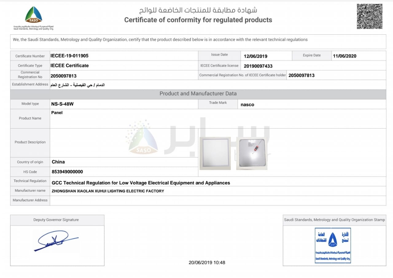 شهادة مطابقة لمنتجات ناسكو العالمية الخاضعه للوائح